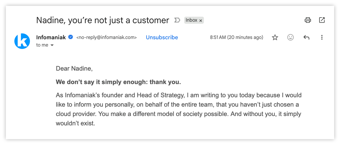 I mean, *clearly* Infomaniak swiped right. No need to play coy at this point. If you’re going to treat me like a long-term partner, at least hire me as your next UI/UX designer! 😉